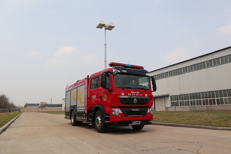 選用意大利FIRECO 氣動(dòng)升降照明桿,型號(hào)CI3912;器材箱結(jié)構(gòu):本體主骨架為鋼制型材,器材架為鋁合金型材,外蒙板為優(yōu)質(zhì)氧化鋁合金平板粘接結(jié)構(gòu)。用于大型火災(zāi)現(xiàn)場及救援現(xiàn)場照明使用。